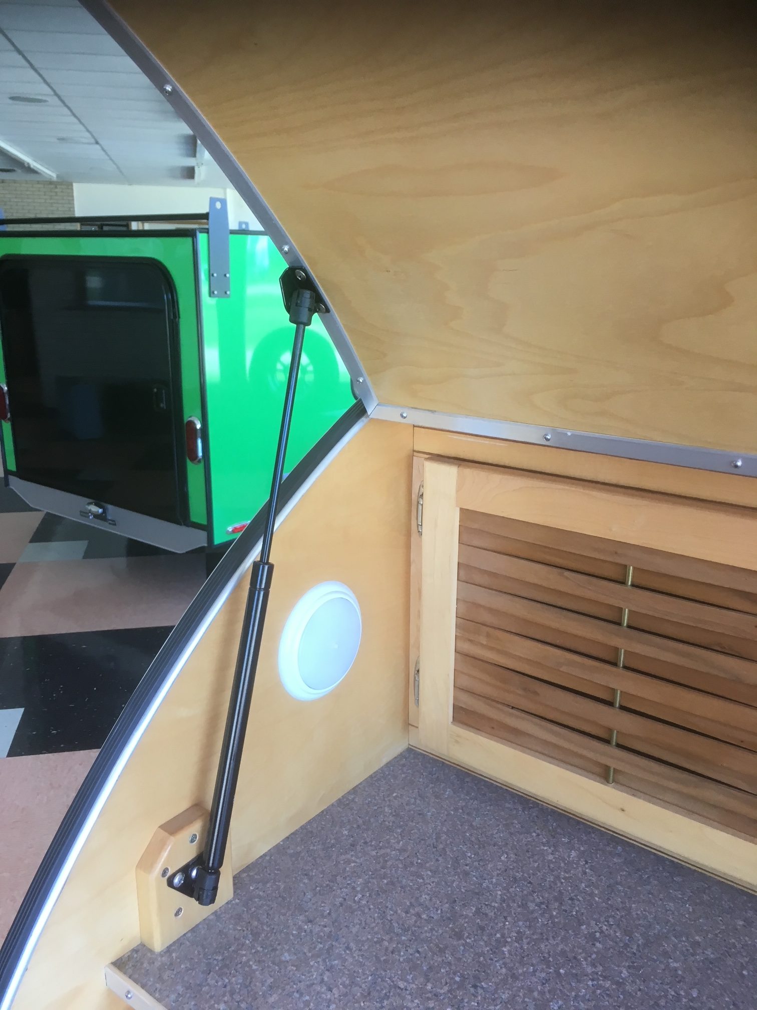 100 lb. capacity gas struts make opening and closing your teardrop galley door effortless. Includes mounting brackets.