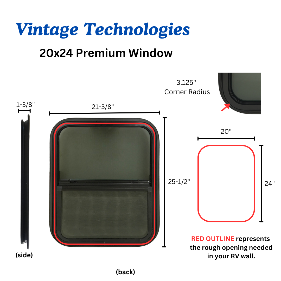 Premium RV Window 20″ Wide x 24″ Tall with Trim
