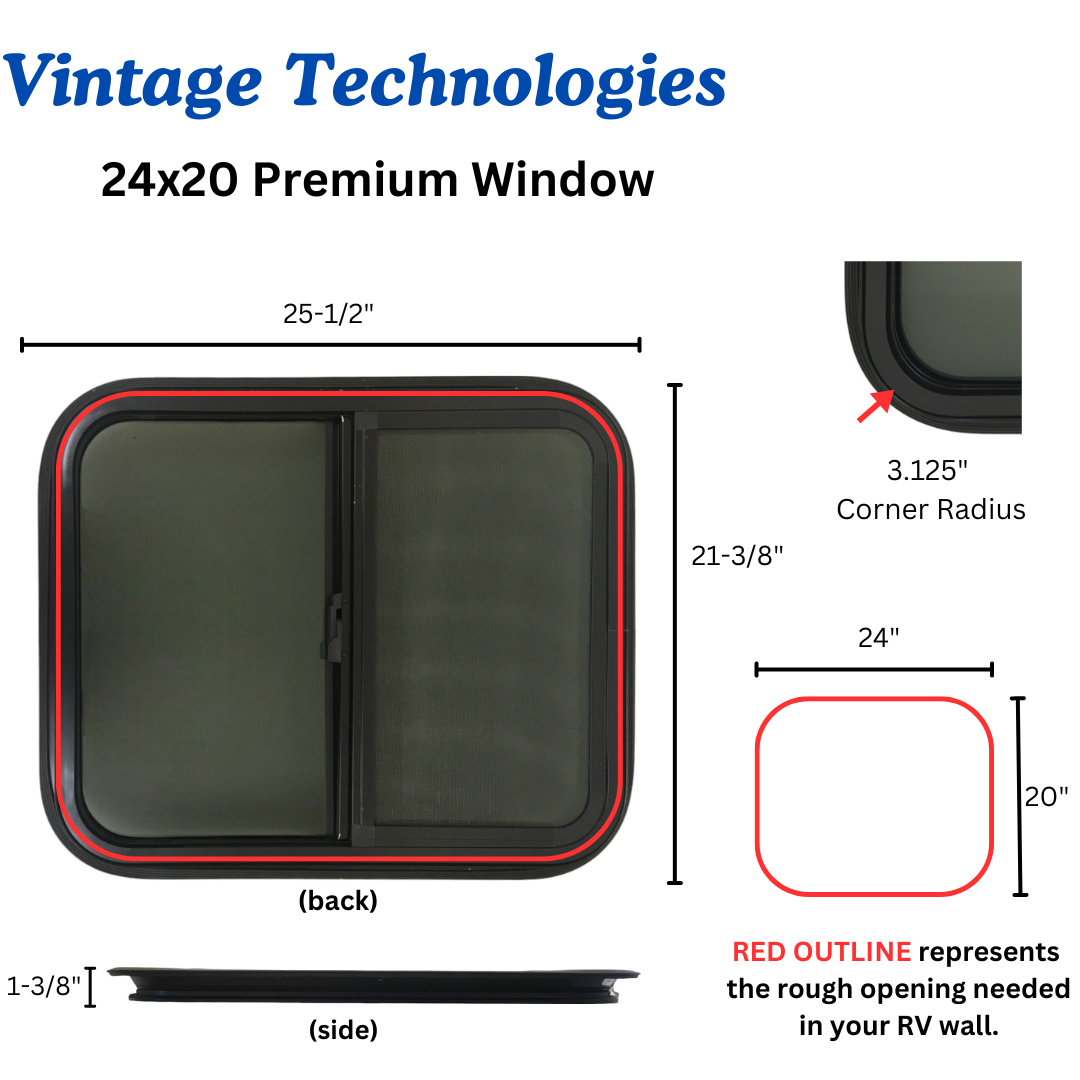 Premium RV Window 24″ Wide x 20″ Tall with Trim