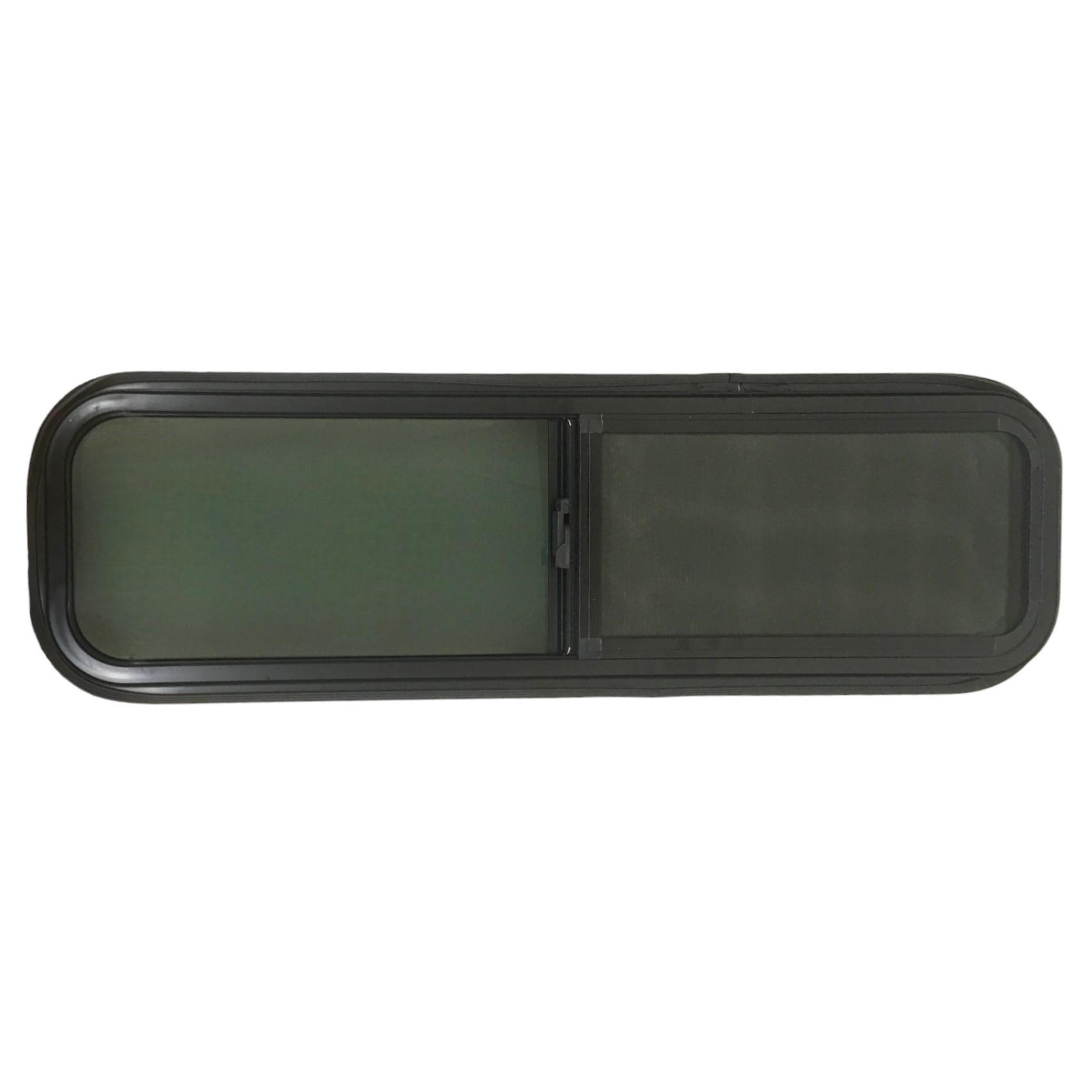 This 42” x 12” horizontal RV window gives optimum visual appeal . Constructed with a lightweight anodized aluminum frame, our windows are resistant to rust and corrosion. The wide trim with ribbed neoprene gasket adds to the life expectancy by creating a weatherproof seal and offering an eye-appealing finish. The tinted glass will protect the insides of your rig from harsh UV rays but continue to allow the sun to naturally provide light. The window easily slides open to reveal a mesh screen that will conveniently keep bugs out while allowing air to flow through freely. When closed securely, this window will be unable to be pried open from the outside, keeping wildlife and intruders at bay.